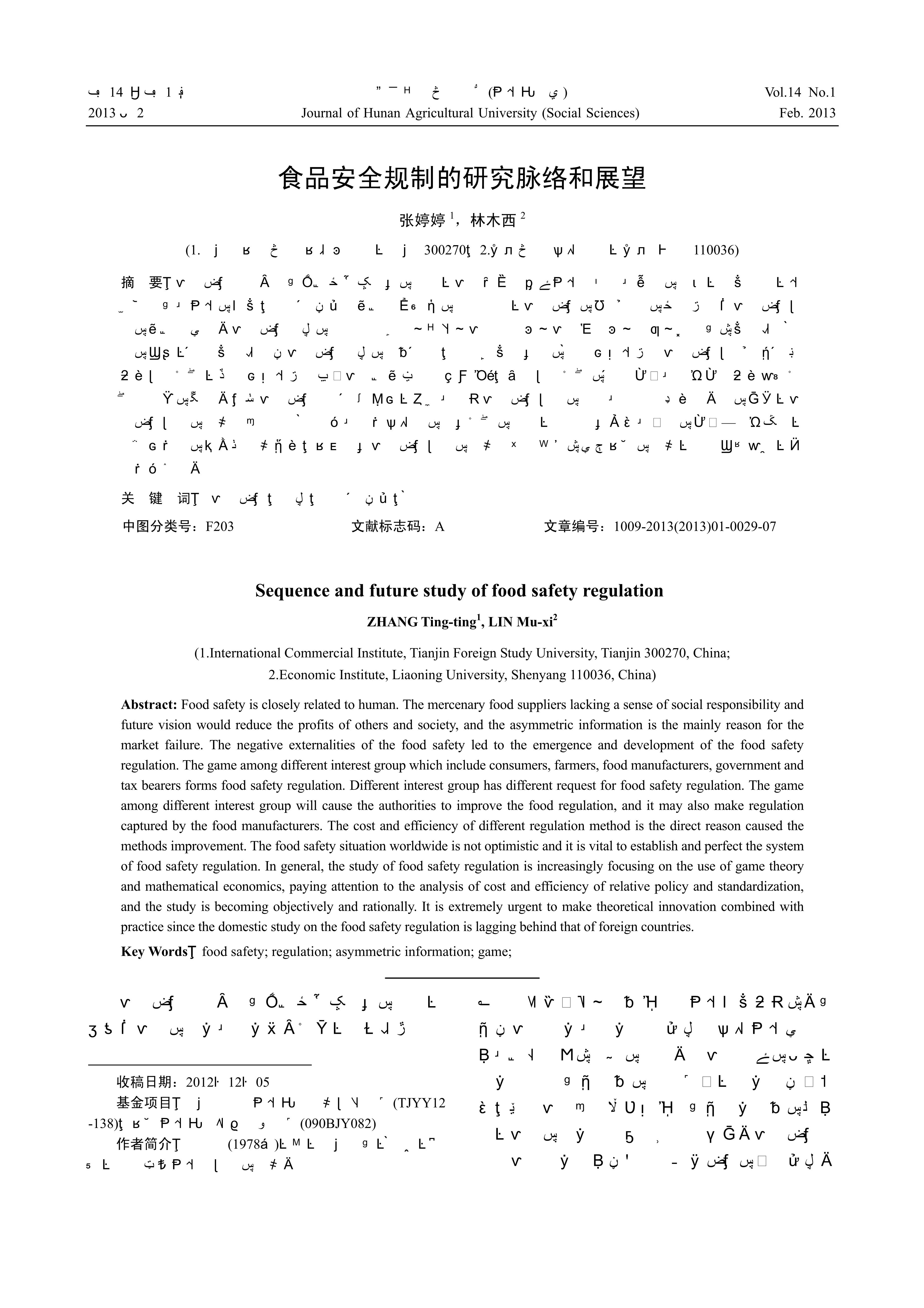 食品安全是一个与人类生存密切相关的问题,食品供给者缺乏社会责任心和长远的眼光,唯利是图,会减少他人和社会的福利;信息不对称是产生市场失灵的主要原因,食品安全的负外部性的存在导致了食品安全规制的产生与发展。食品安全制度的选择是消费者、农户、食品制造商、食品零售商、政府、纳税人等利益集团博弈的结果,不同利益集团对食品安全制度的诉求不同;主体间利益关系的博弈可能会导致食品安全规制部门不断改进规制方法,但也可能会导致其被食品生产企业所“俘虏”;各种规制方法的不同成本和效率成为改进实施方法最直接的动因。全球食品安全问题不容乐观,构建和完善食品安全规制的体系和体制亟待进行。总的来看,食品安全规制的研究正日益注重博弈论和数理经济学的相关方法的应用,注重相关策略和标准的成本—效率分析,向客观理性的深层次研究迈进;国内有关食品安全规制的研究滞后于欧美等发达国家的研究,亟需结合实践,开展理论创新。
