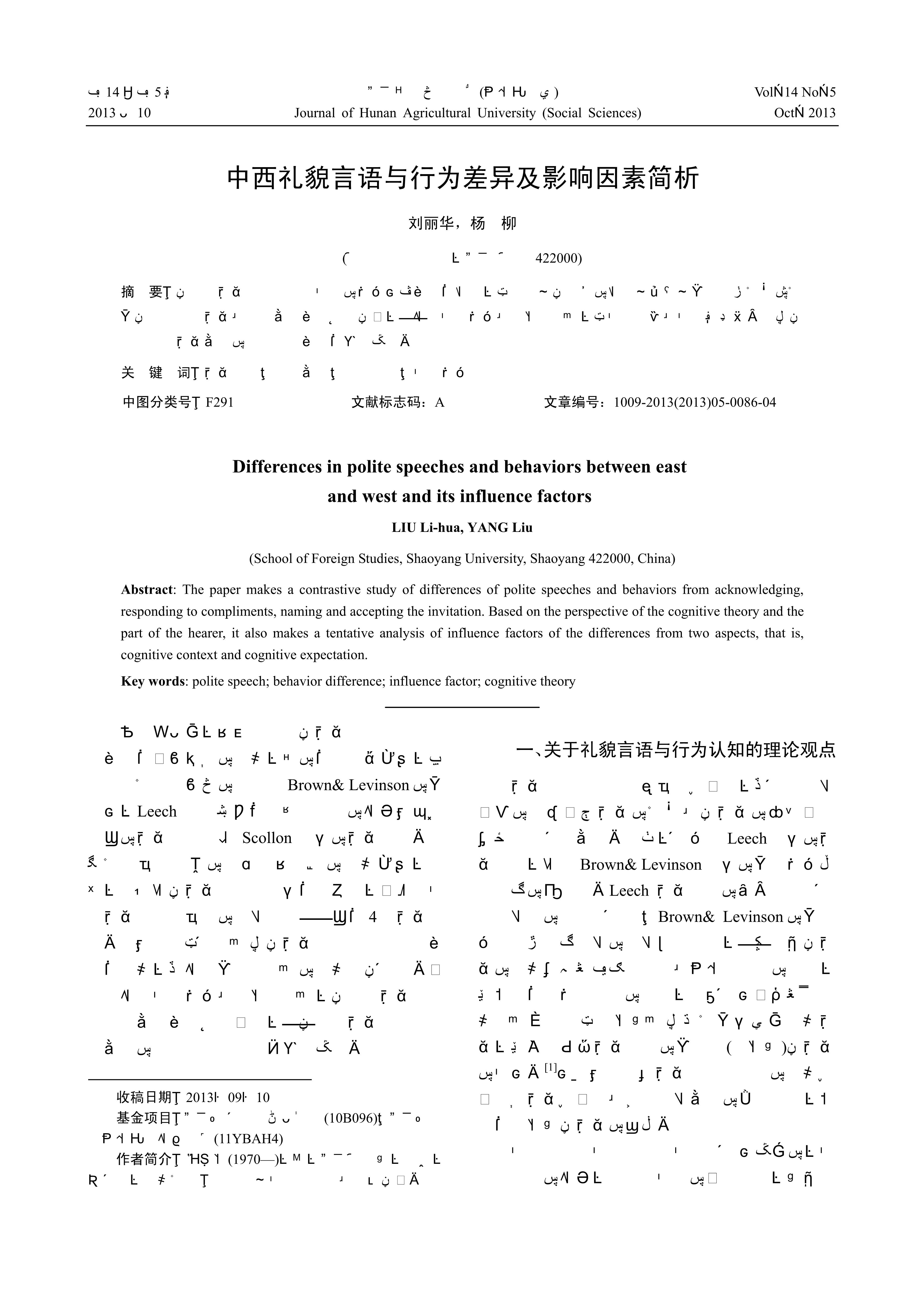 对中西礼貌言语与行为认知的理论观点进行了回溯,从致谢、对赞美的回应、称呼、接受邀请方式等方面对中西言语礼貌和行为差异进行简要对比,并基于认知理论和听话者视角,从认知语境和认知期待两个维度对中西言语礼貌差异的影响因素进行了初步分析。