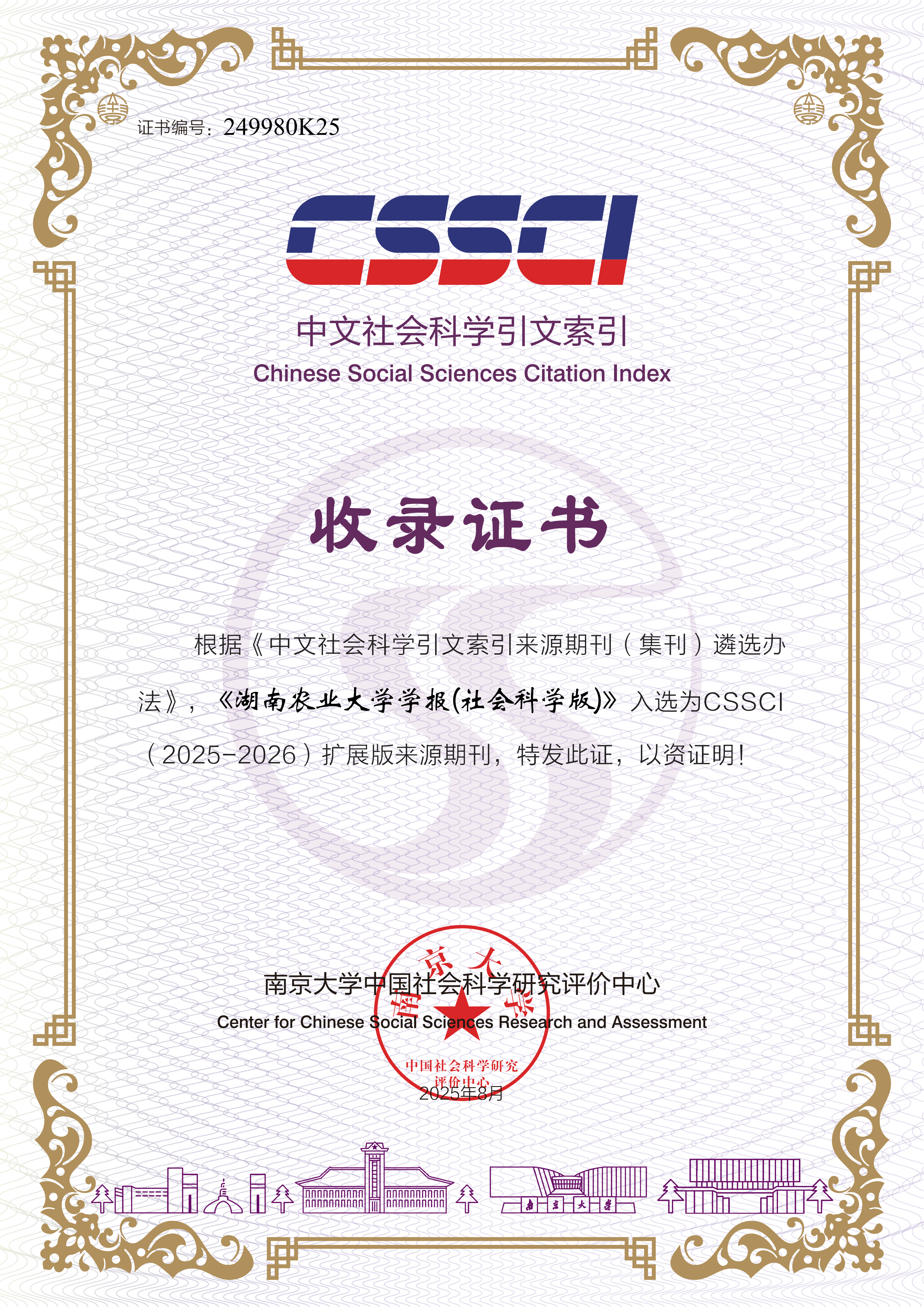 湖南农业大学学报社会科学版 ® 2026 版权所有